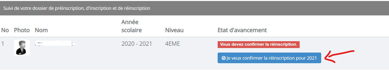 Lorsque vous lancerez la réinscription pour l'année prochaine, un bouton s'affichera du côté des parents pour confirmer le renouvellement de l'inscription.