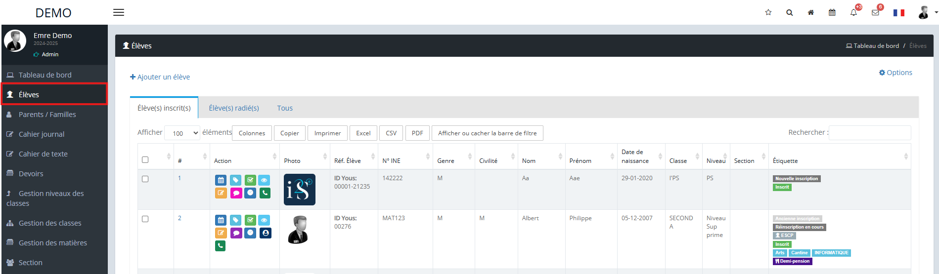 2. Cliquez sur « Élèves » (ou « Étudiants » pour le LMD)