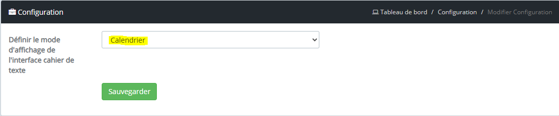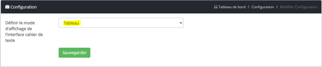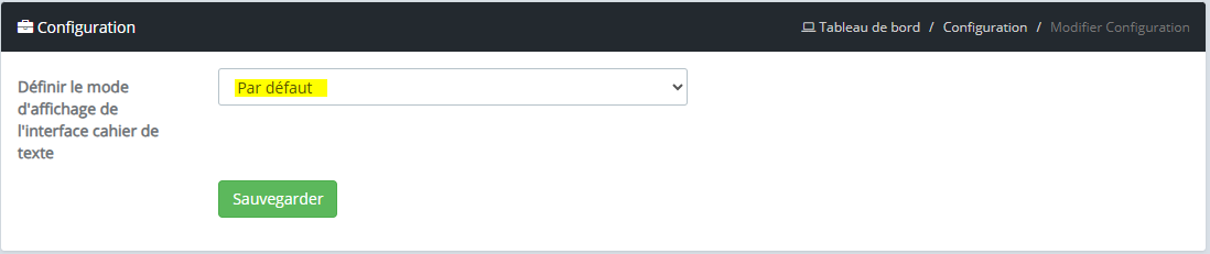 ❓ Comment définir le mode d’affichage de l’interface Cahier de texte ?