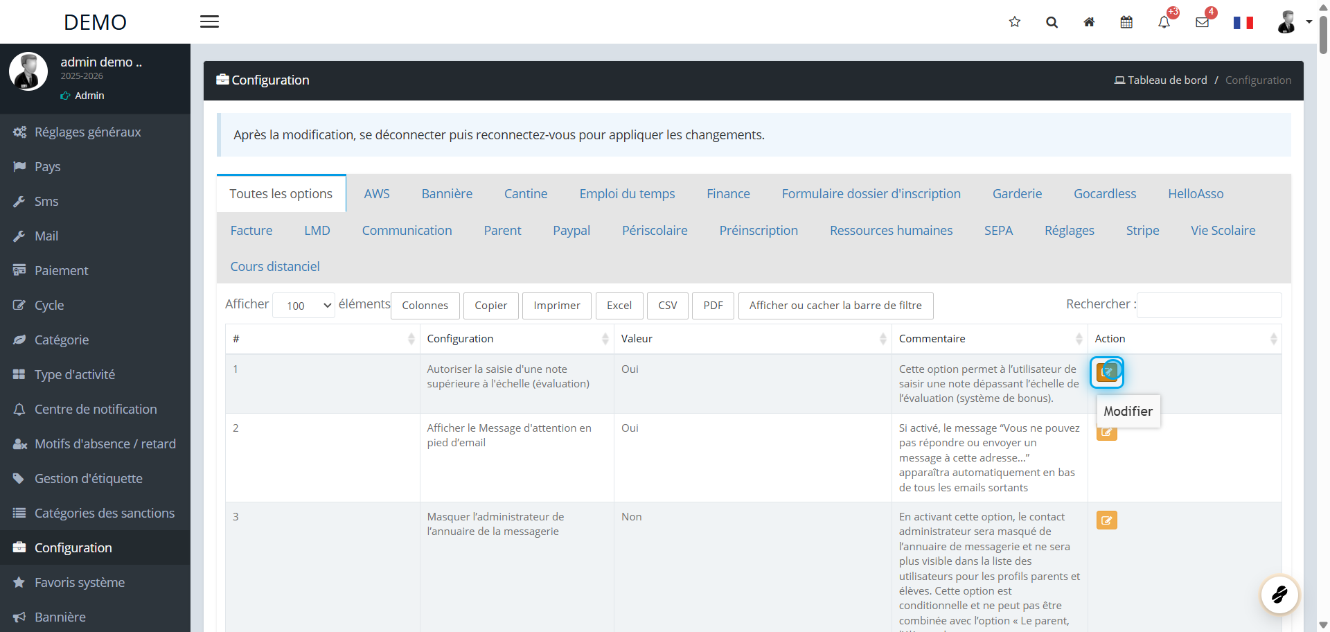 Cette option de configuration permet de masquer le contact administrateur de l’annuaire de messagerie. En l’activant : L’administrateur ne sera plus visible dans la liste des utilisateurs pour les profils parents et élèves. Cette option est ...