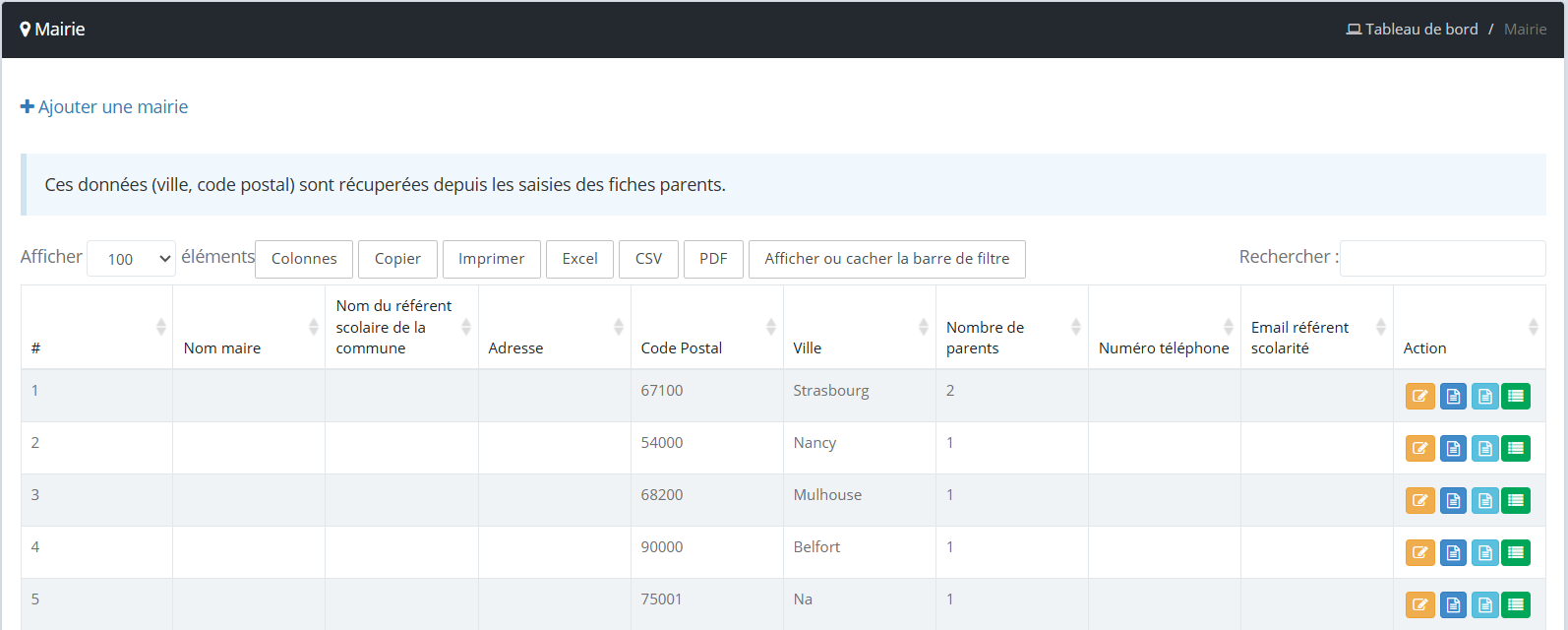 Comment exporter les déclarations de scolarité pour la mairie ?