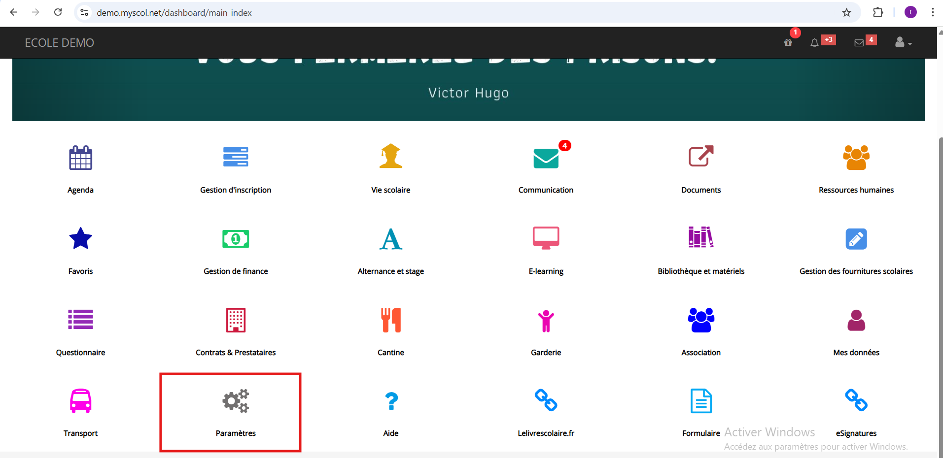 1️⃣ Depuis le tableau de bord principal, accédez au module "Paramètres".