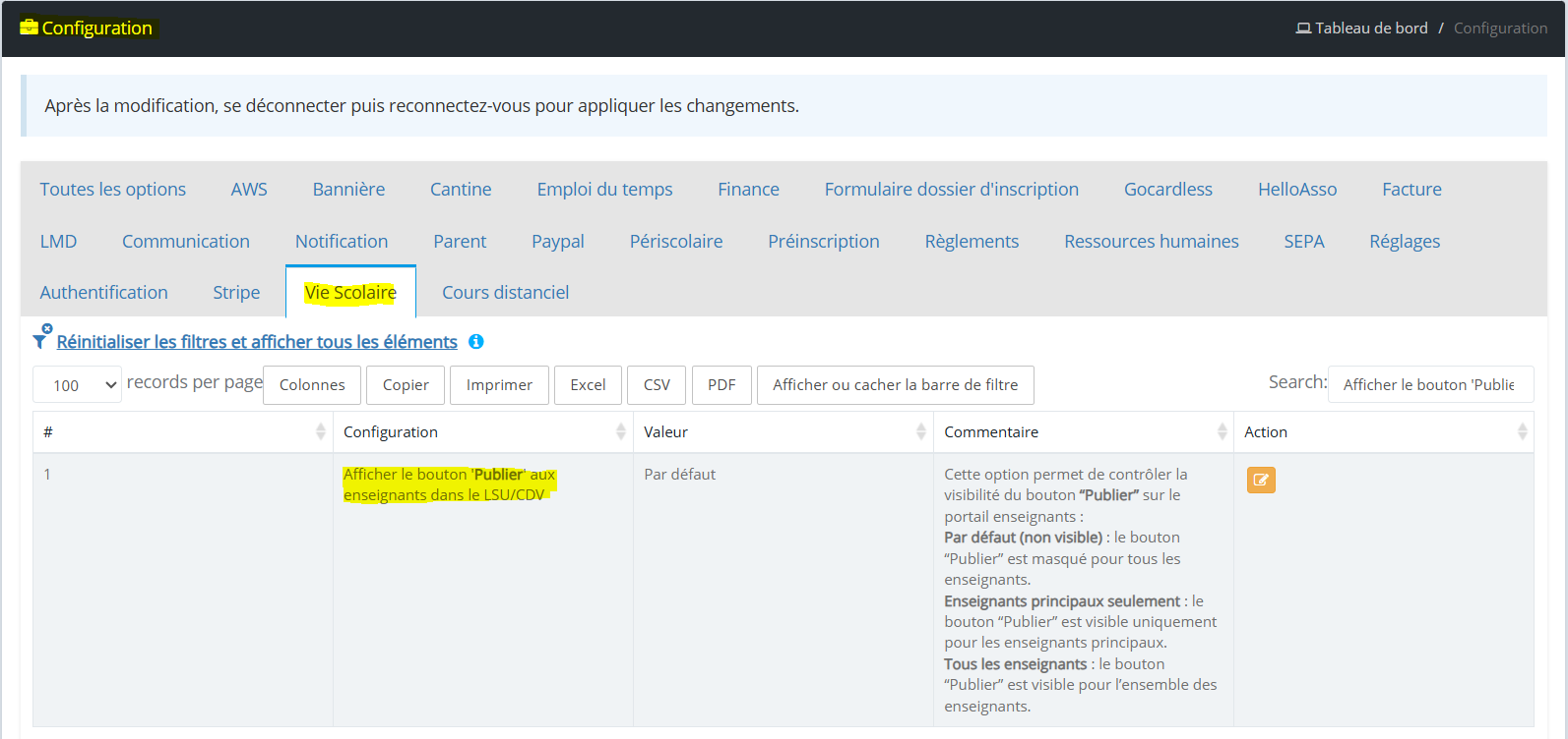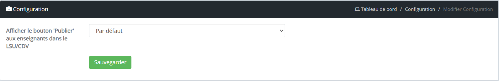 3️⃣ Recherchez l’option « Afficher le bouton “Publier” aux enseignants dans le LSU/CDV ».