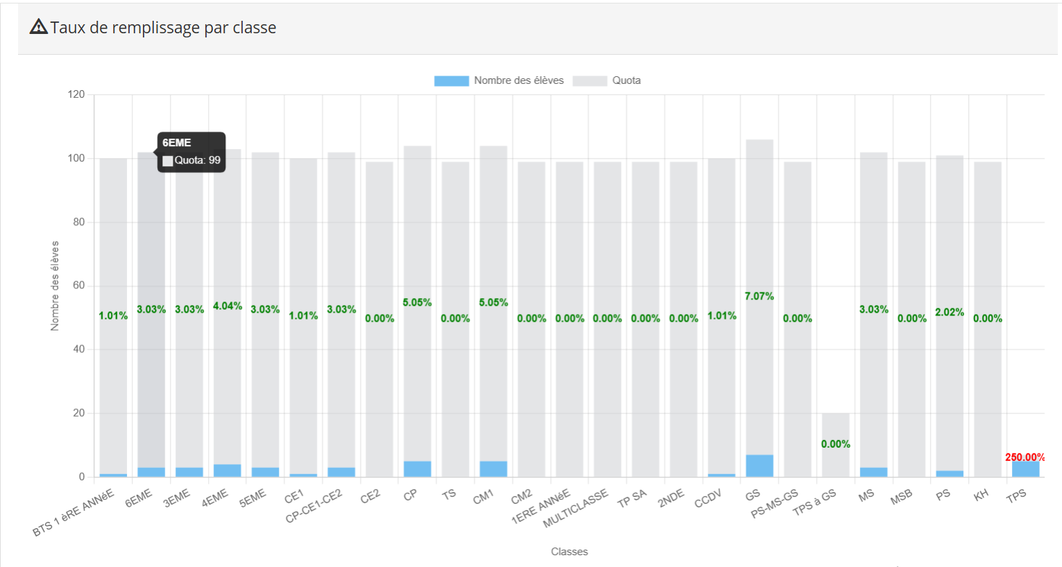 Ces visualisations permettent d’identifier rapidement les classes sous ou sur-remplies et de gérer efficacement les capacités de l’établissement.