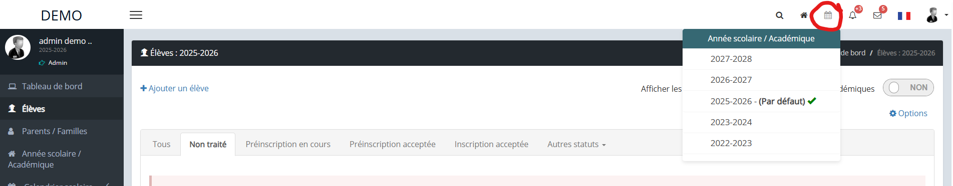 Si l’élève est inscrit sur une session différente de la session par défaut, vous devez :