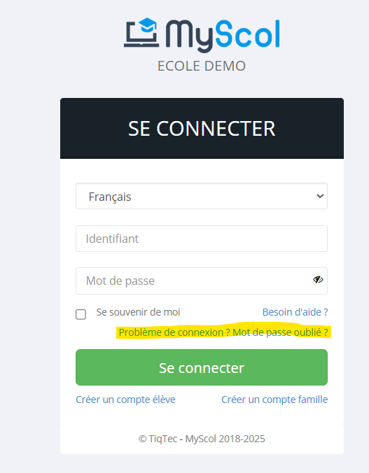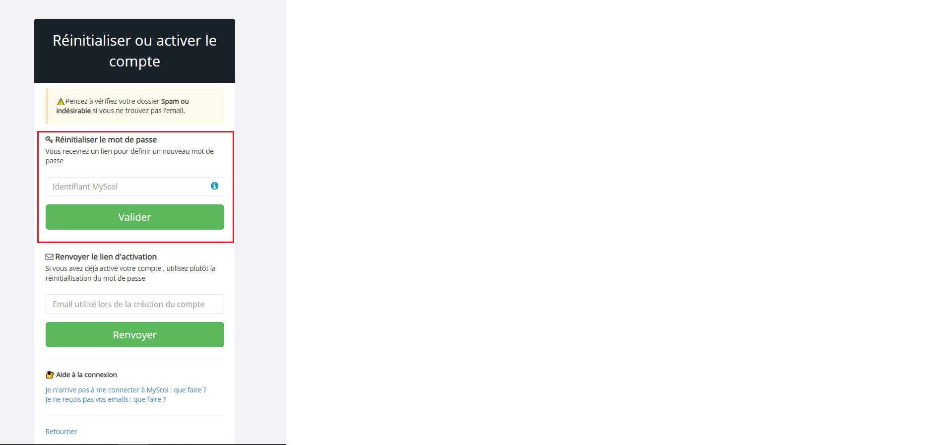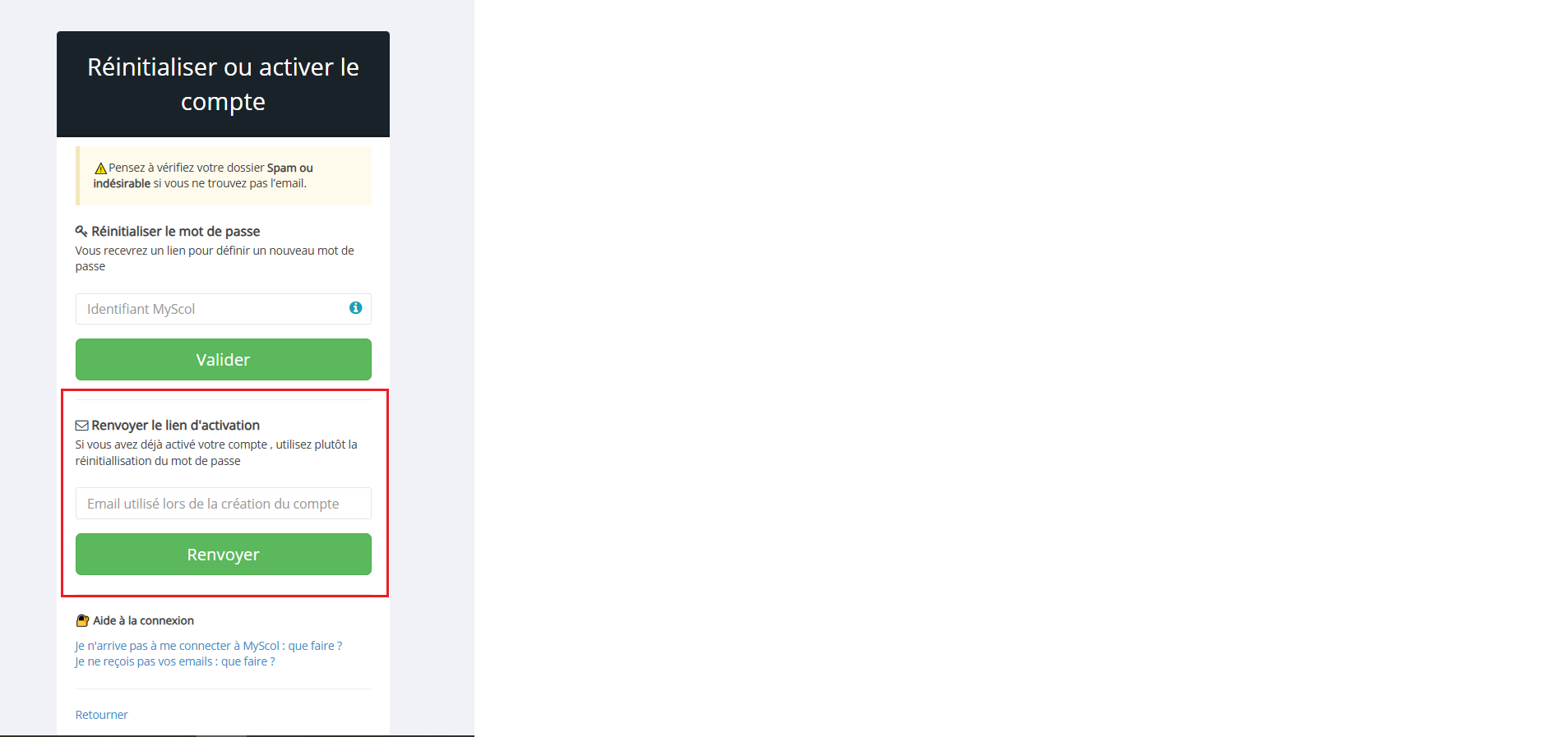 Si nécessaire, vous pouvez renvoyer un email d’activation depuis l’interface de connexion en cliquant sur le lien "Problème de connexion ? Mot de passe oublié ?"